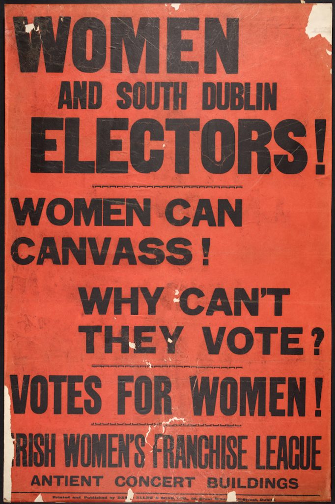 At a time when women had no voice in politics, print allowed women to have a voice in the public sphere with which to campaign for change. Irish suffragists produced posters, handbills, booklets, imagery, and written articles which publicised their requests for equal voting rights to men. This helped to counter the prolific negative imagery and messages which opposed and mocked the suffragists and their aims.